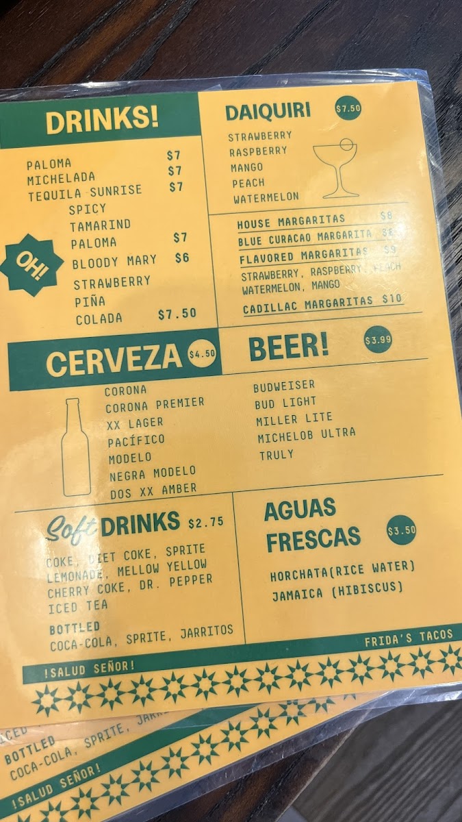 Guests rave about the tacos, which are crafted to perfection, bursting with fresh ingredients and vibrant spices. One standout review highlights the incredible potatoes, praised as some of the best in town. Diners consistently note the reasonable prices paired with exceptional quality, making Frida’s an excellent choice for any meal.